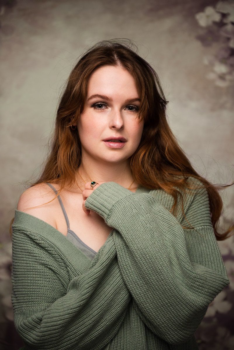 تصویر نهایی کاملا ویرایش شده پس از انجام چند ویرایش کوچک، از جمله حذف موهای سرگردان روی پیشانی او، در Adobe Photoshop