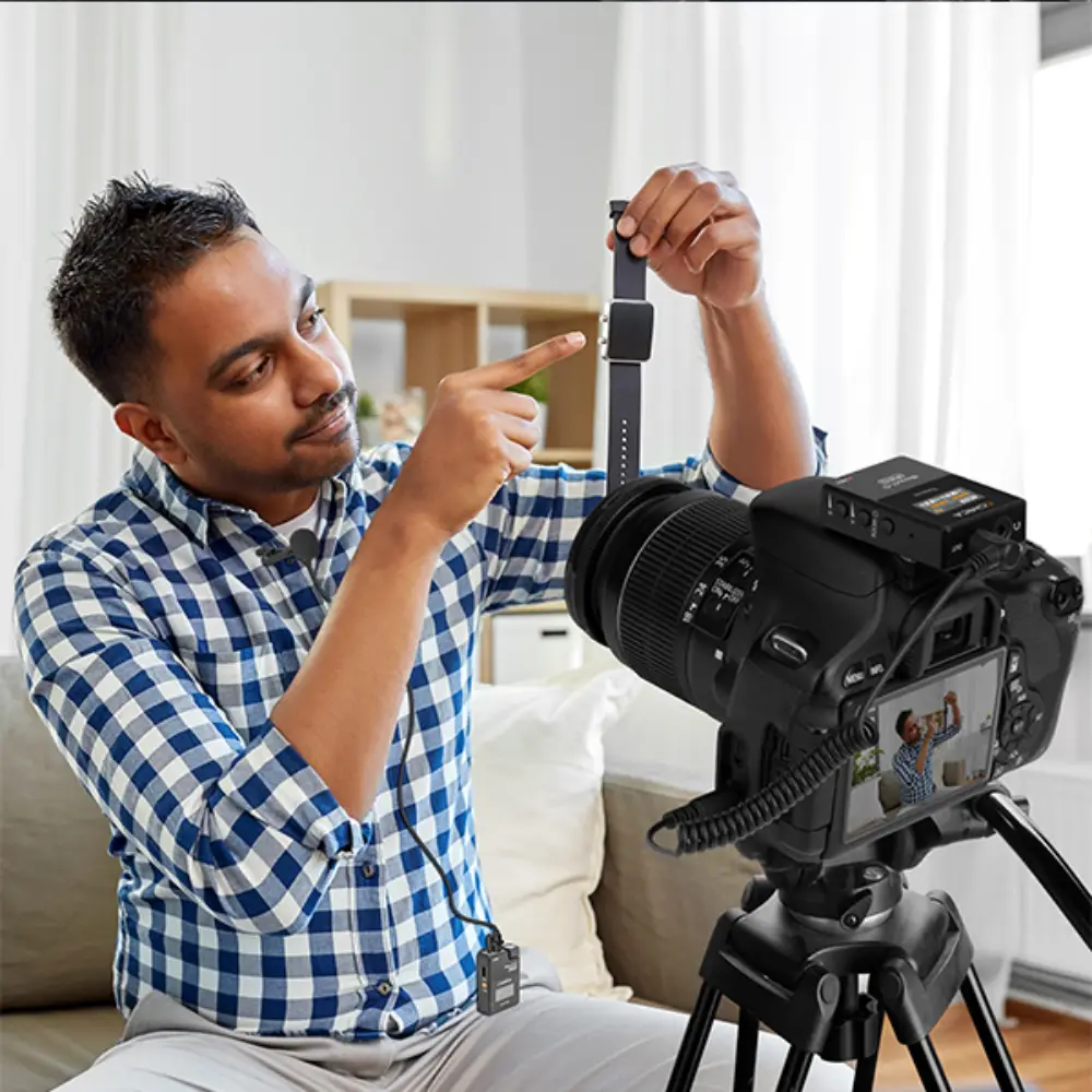 بدنه کوچک و سبک فرستنده میکروفون بی سیم کامیکا باعث میشه بهراحتی روی لباس نصب بشه. نمایشگر OLED روی بدنه هم وضعیت باتری، اتصال و سطح صدا رو نشون میده تا همیشه کنترل دست شما باشه.